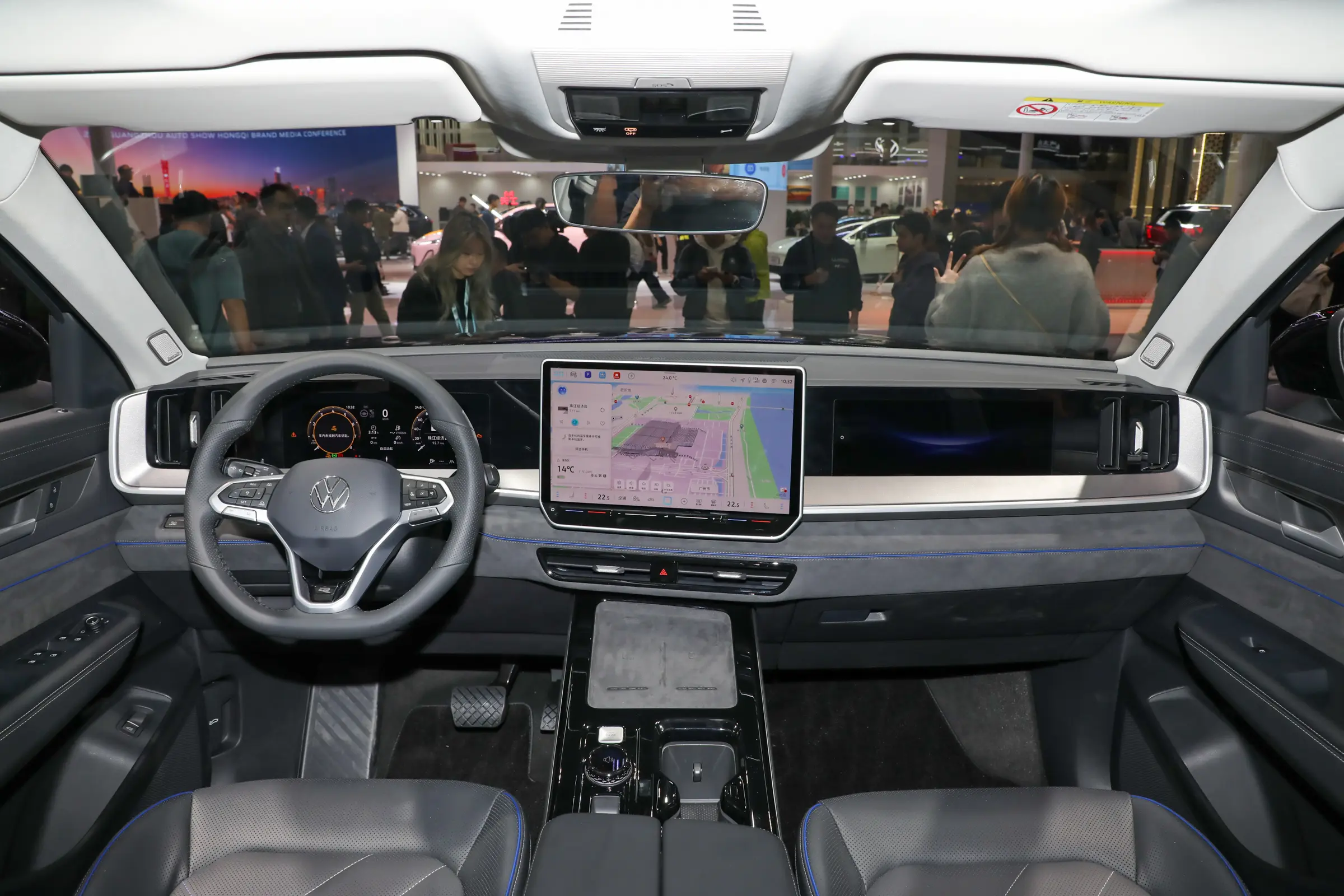 内饰方面,新款揽巡采用大众汽车最新一代的设计风格,偏向主驾驶席一侧的设计,取消双联屏设计,换装15英寸悬浮式中控屏和11.6英寸副驾娱乐屏,副仪表台处的造型也进行了调整,增加双手机无线充电位的置物槽,以及开放式的水杯架。新款车型也升级采用了怀挡的设计,因此给中控台下方留下了更多的空间。
