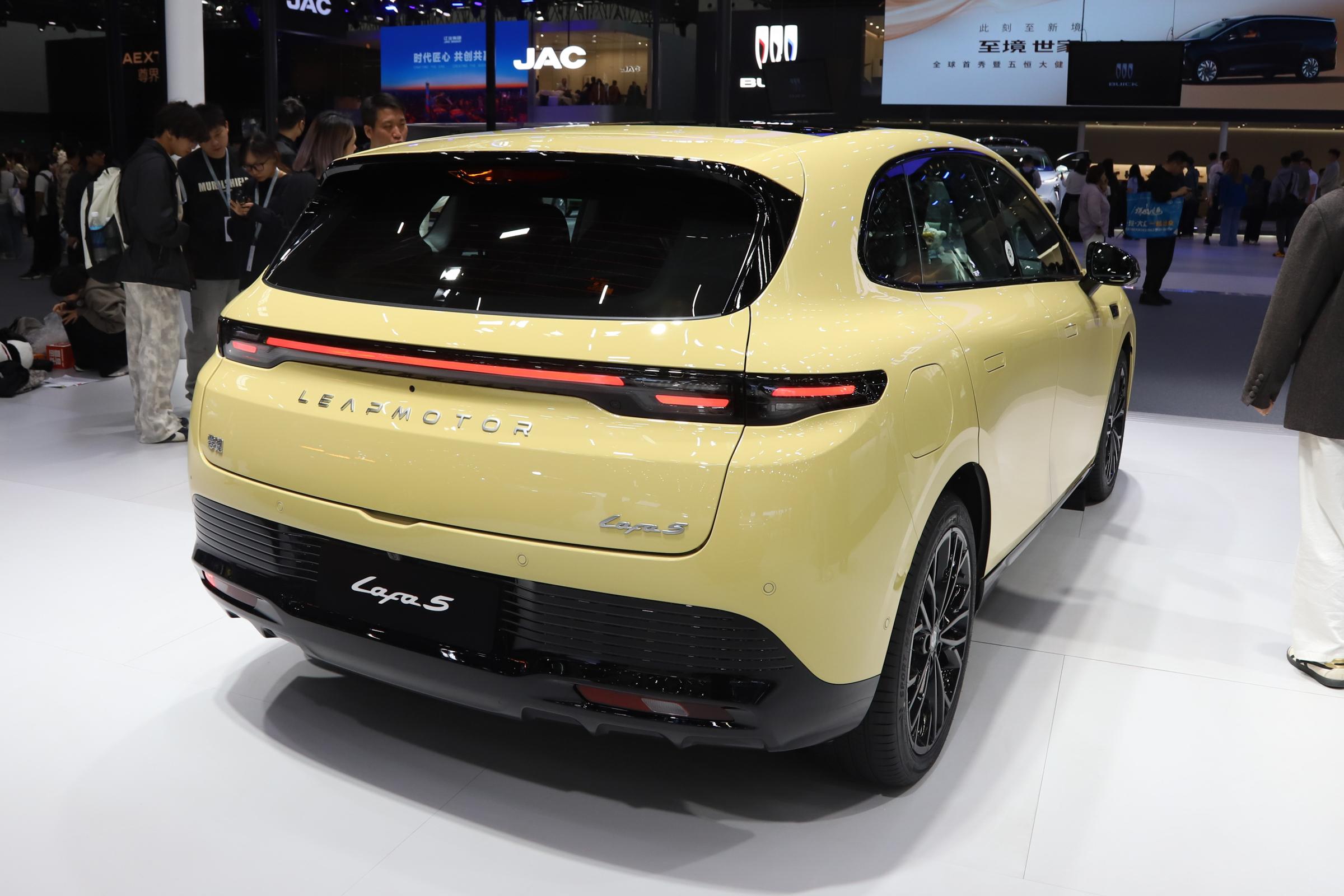 车尾部分,新车采用飞翼星芒式的贯穿式尾灯组设计,尾门中央镶嵌了“LEAPMOTOR”字母标识,进一步提升车辆的辨识度。另外,新车配备大尺寸分段式扰流板,搭配溜背式造型布局,令车辆更显视觉冲击力。
