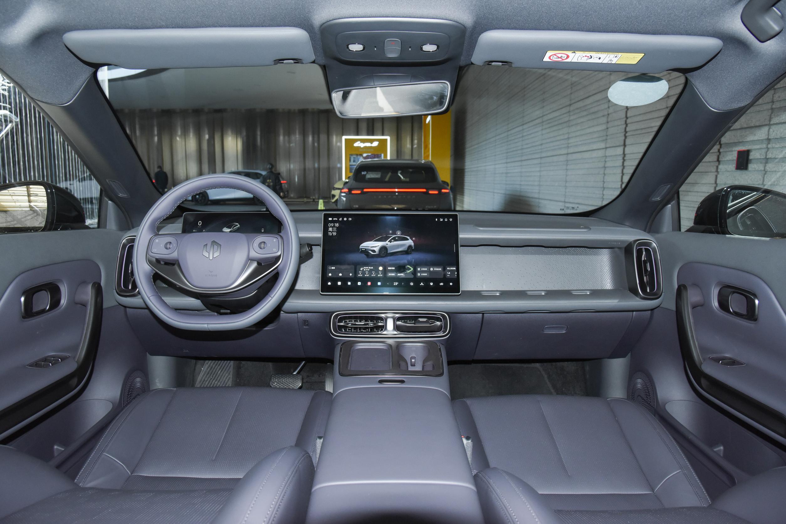 内饰方面,新车车内运用大面积仿麂皮超纤绒材质包裹,全系采用黑化哑光枪灰镀铬饰件布局,并提供速域紫、驰影灰、竞速灰共3款配色选择,其中,竞速灰将运用在高配车型上。配置方面,新车配备8.8英寸的液晶仪表盘和14.6英寸的2.5K高清中控屏,车机为高通骁龙8295P旗舰芯片。此外,新车还搭配双辐式多功能方向盘和怀挡式换挡机构,中控屏下方为双通道的空调出风口设计,并运用金色饰条进行装饰,提升精致感,通道上则配备单无线充电面板以及纵向布局的双杯架设计,整体不失科技感。