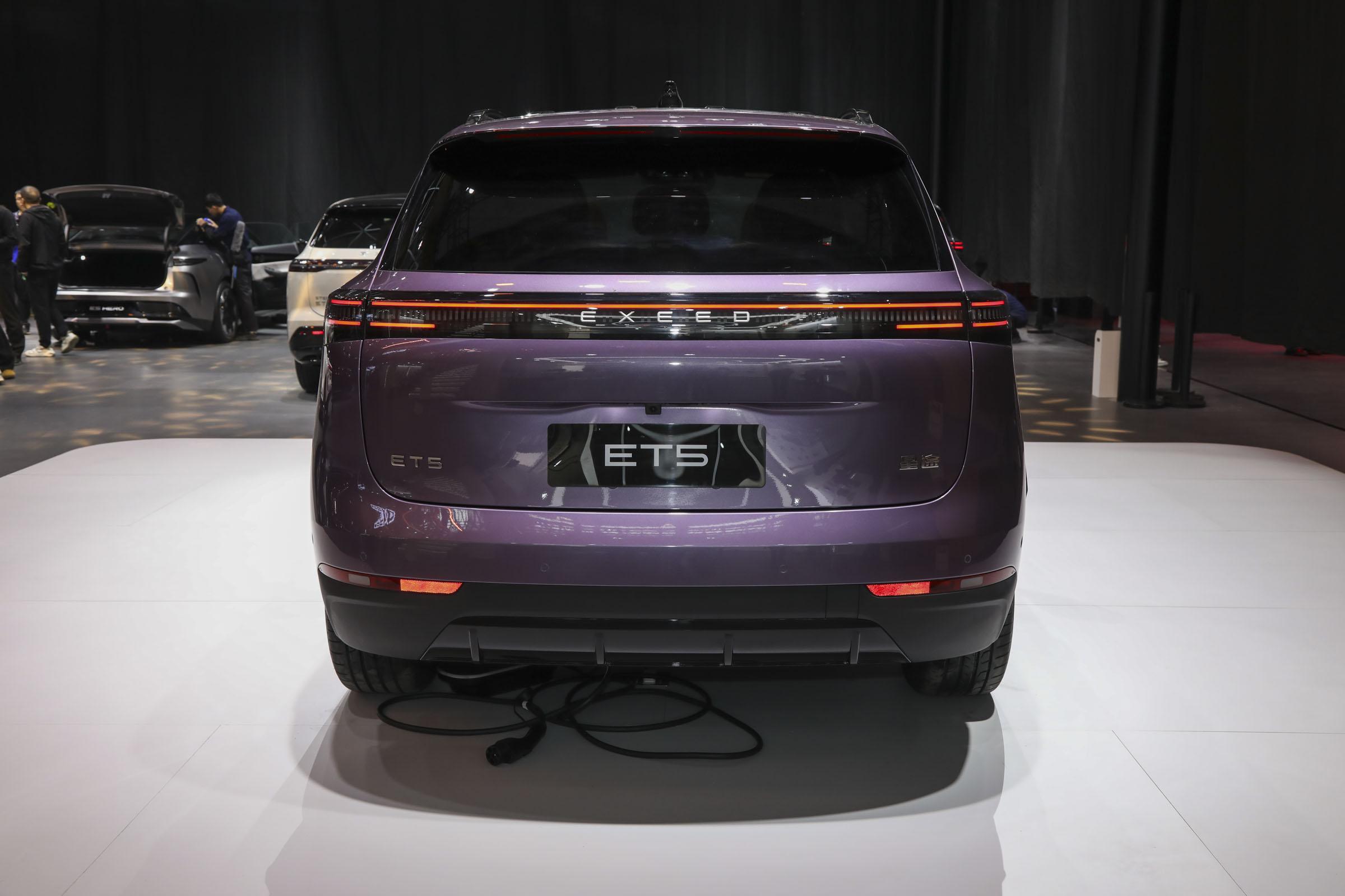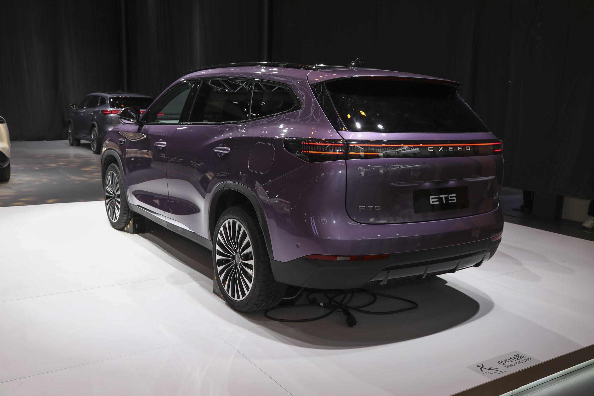 车身侧面,新车采用多条腰线设计,令车辆视觉效果上更显立体感,配备常规造型车门把手,标配天窗,并对车门下边缘加入银色装饰件,进一步提升车辆的精致度。车身颜色方面,新车提供暮光紫、晴空蓝、星夜黑、云舒白以及月岩灰共5种配色供消费者选择。尺寸方面,新车长宽高分别为4780/1890/1725mm,轴距为2800mm,定位中型SUV。车尾部分,新车尾灯采用贯穿式灯组设计,点亮后呈现分段式效果,灯组中央设有品牌英文标识,增强车辆的辨识度。另外,新车配备鲨鱼鳍天线和车顶扰流板,提升车辆的运动气息。排气方面,新车采用隐藏式排气布局。