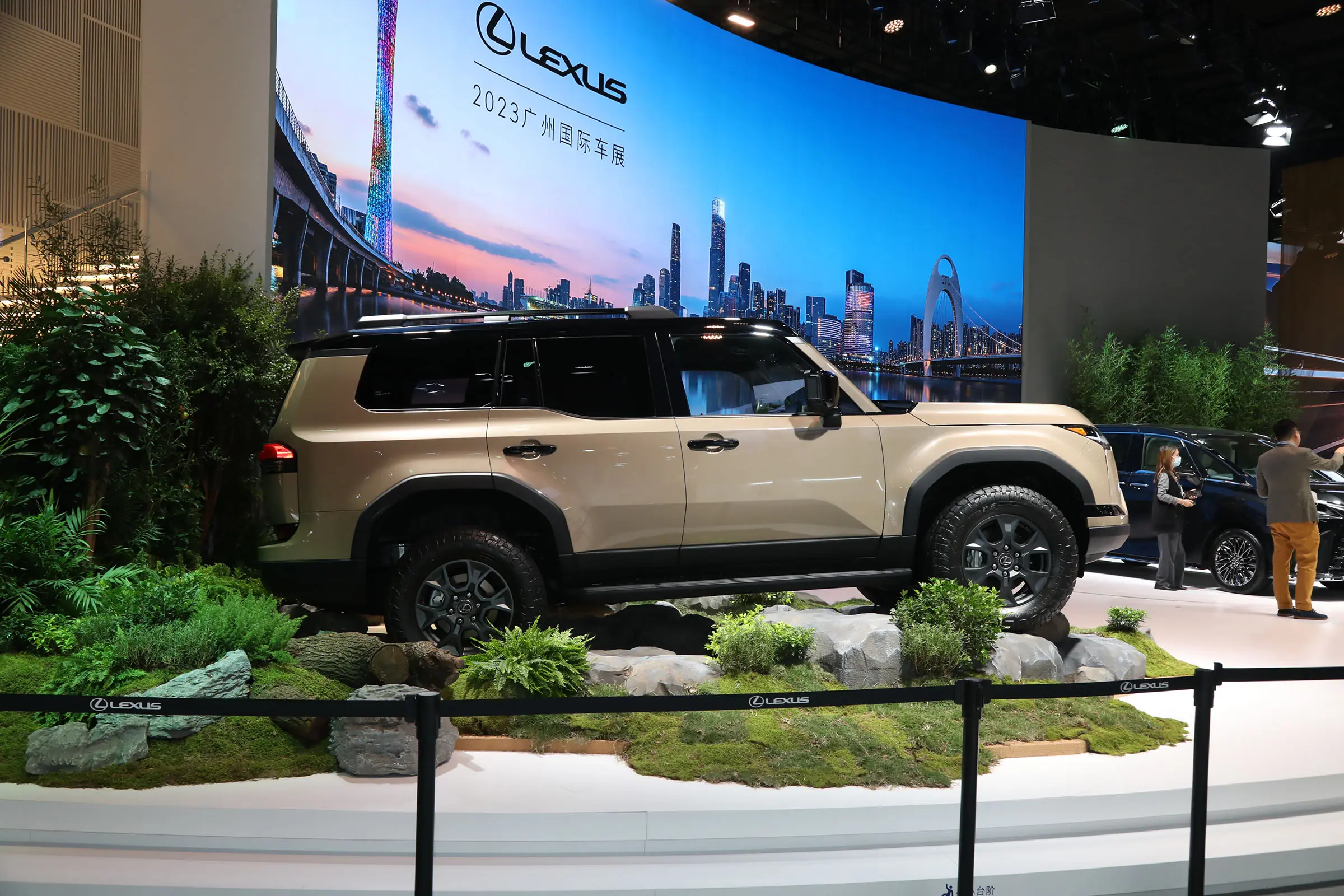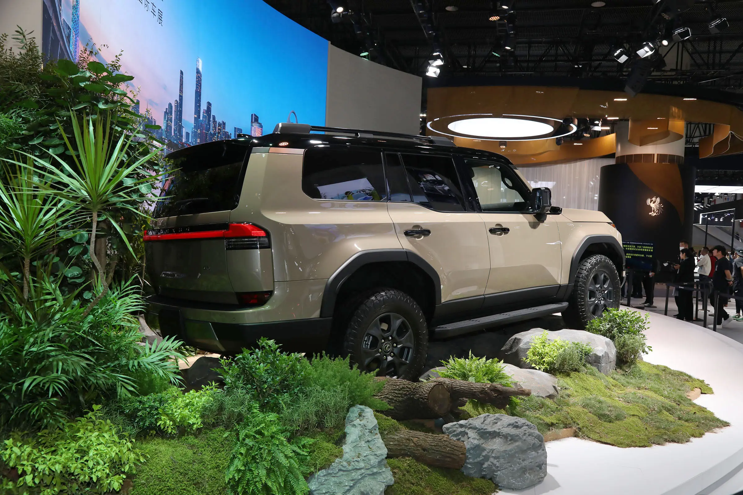 车身侧面,雷克萨斯新GX采用见棱见角的设计语言打造,平直的腰线设计从车头一直延伸至车尾,门板下方野也采用了内凹的设计来塑造力量感。尺寸方面,新车长宽高分别为4960(4970)/1980(2000)/1925(1935)mm,轴距为2850mm。车尾方面,雷克萨斯新GX延续车头方正的造型轮廓,尾灯采用贯穿式设计,后风挡玻璃可以单独打开,并采用隐藏式排气布局,在功能上还标配了电动后尾门以及脚踢式开启功能。