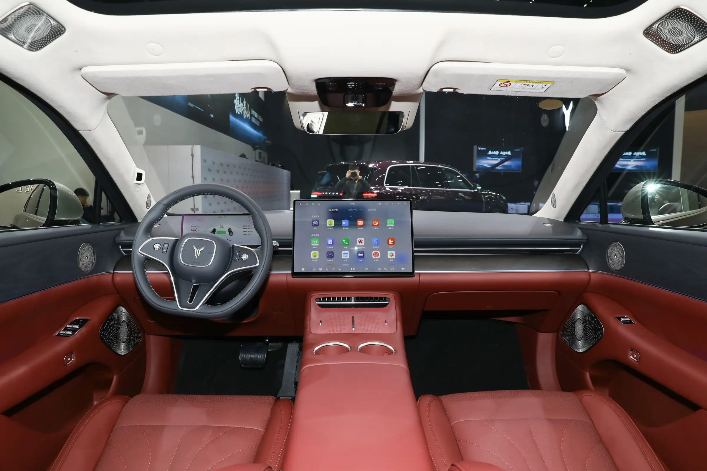 内饰方面岚图追光L采用三辐式平底方向盘,并应用怀挡式换挡机构,副仪表台布局简洁,并未配备任何物理按键。车内为2+3式的5座布局,标配通风、加热、10点式按摩,前排座椅还标配CLA坐垫延伸机构。副驾则配备零重力座椅,后排则提供8英寸扶手屏。另外,岚图追光L还提供带遮阳帘的全景天幕、大尺寸化妆镜、6.6升车载冰箱、后排右侧折叠桌板、256色氛围灯、四门电吸门、四温区空调、智能香氛、23扬声器音响系统、中置扬声器、主驾头枕音响等配置。