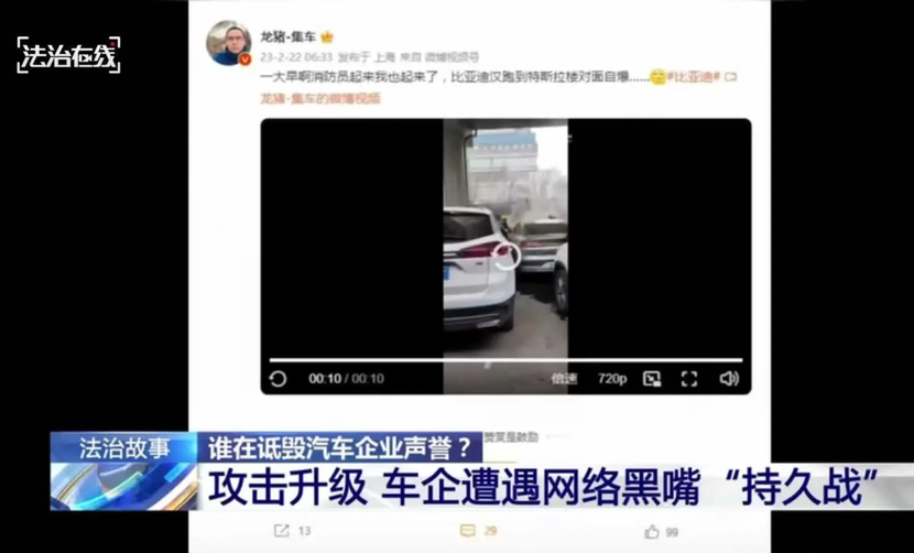 比亚迪的案例主要是与自媒体博主“龙猪集车”的名誉侵权案。视频内容中指出,该博主多年持续发布针对比亚迪的诋毁信息。其中,除了发布虚假内容外,还给企业贴标签引导二次传播。对于“龙猪集车”的名誉侵权案,比亚迪公关处法务经理表示,大概将近5年的时间,其发布的一些侮辱信息、虚假不实信息被累计转发数千次,评论近两万条,给比亚迪造成了很严重的损失。2023年,比亚迪对其进行起诉,2024年法院认定“龙猪集车”构成名誉侵权,判令其删除内容并公开致歉,并赔偿比亚迪经济损失 201.87 万元。今年6月,法院二审维持原判。