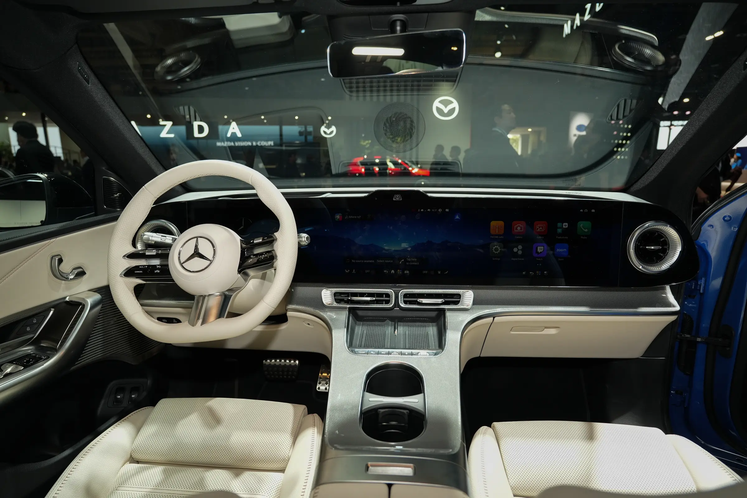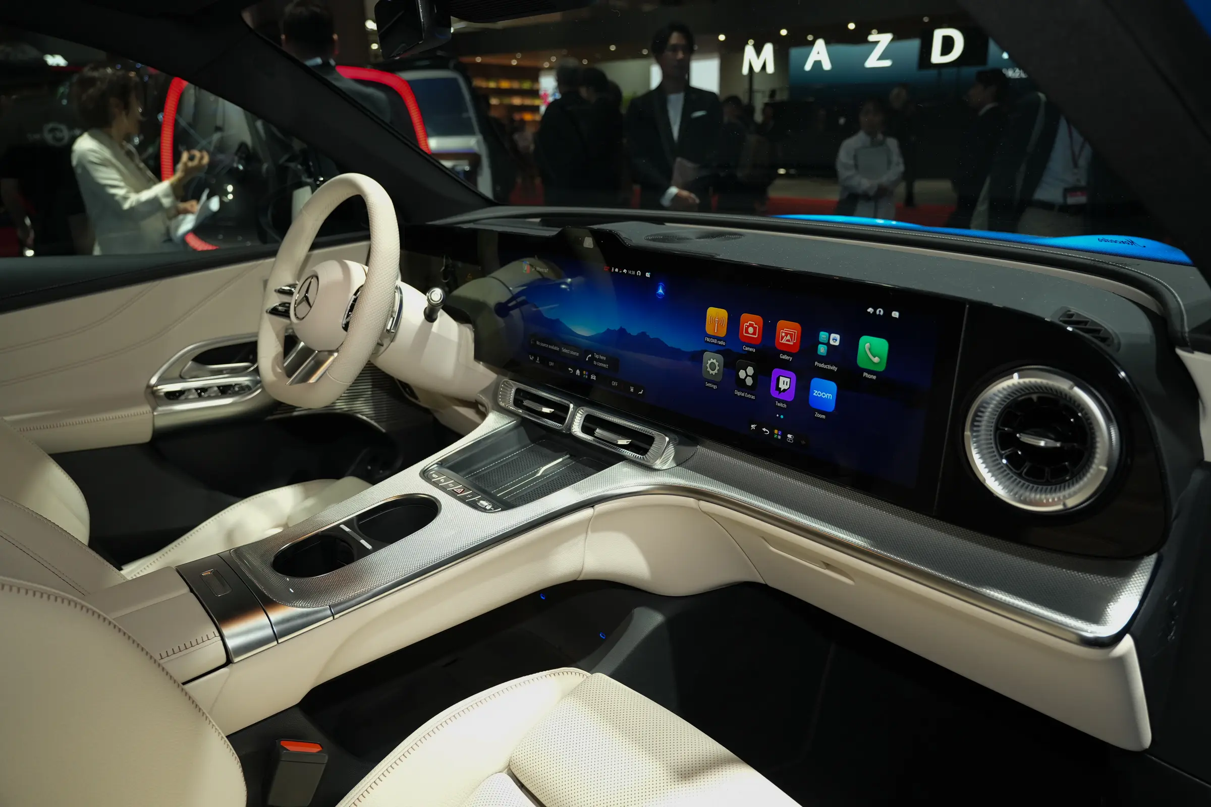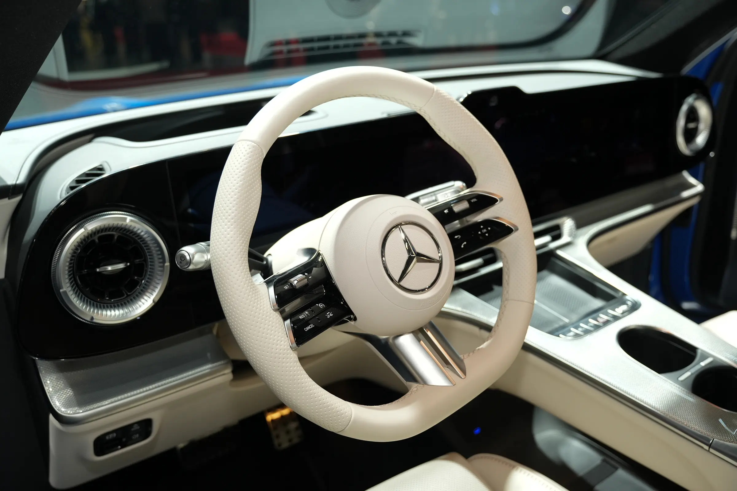 内饰方面,参考海外版本,海外版全新奔驰GLC配备39.1英寸MBUX HYPERSCREEN贯穿式屏幕,为目前奔驰旗下应用的尺寸最大的屏幕,搭载第4代MBUX智能人机交互系统,配备9个分区和星空氛围灯的智能光感全景式天幕。中控台两侧保留圆形空调出风口,车内氛围灯系统可覆盖至空调出风口区域,配备怀挡式换挡机构和三幅式方向盘。
