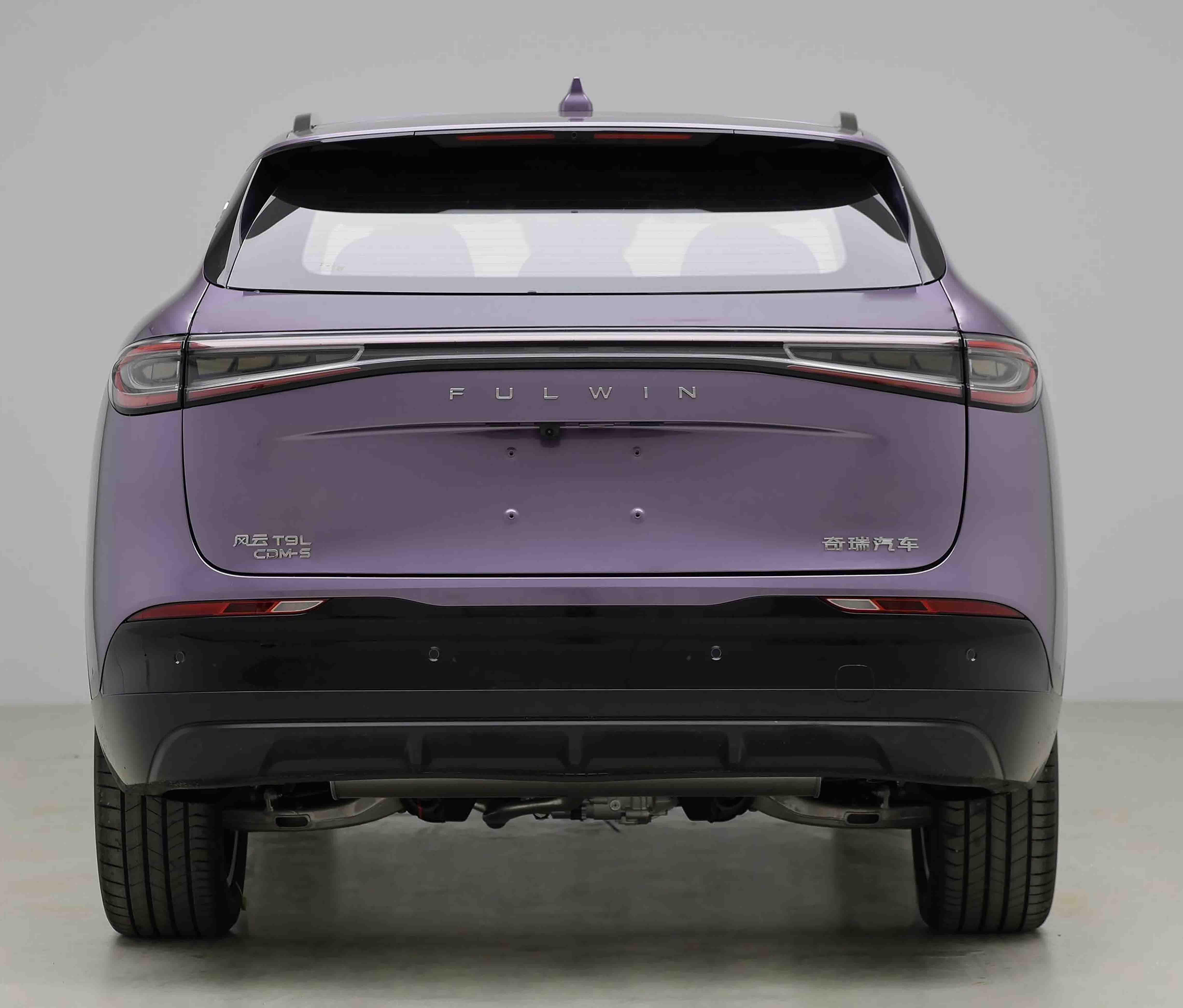 车身侧面,新车线条流畅,呈现轿跑SUV的设计感,采用半隐藏式门把手以及无边框式外后视镜。尺寸方面,新车长宽高分别为4870/1930/1710mm,轴距为2920mm,定位中型SUV。车尾部分,新车采用贯穿式尾灯组设计,两侧主尾灯组呈现环绕和点阵设计,中央配备驾驶辅助小蓝灯,夜间点亮后同样拥有非常高的辨识度。尾灯组下方标有“FULWIN”英文标识,尾门左下角带有“风云T9L CDM”,右侧则带有“奇瑞汽车”表明车辆身份信息。后包围采用与车身不同色的设计,搭配车顶配备的扰流板,强化运动属性。
