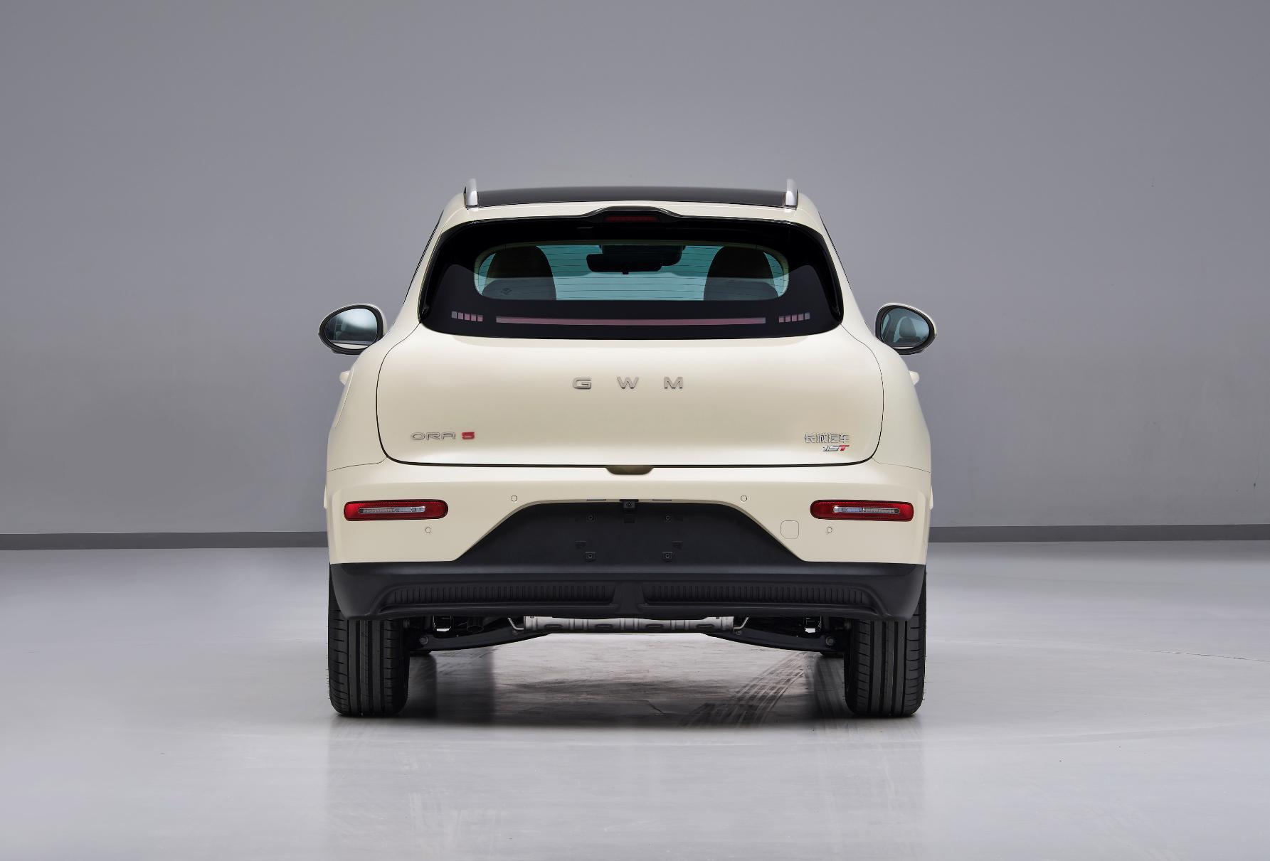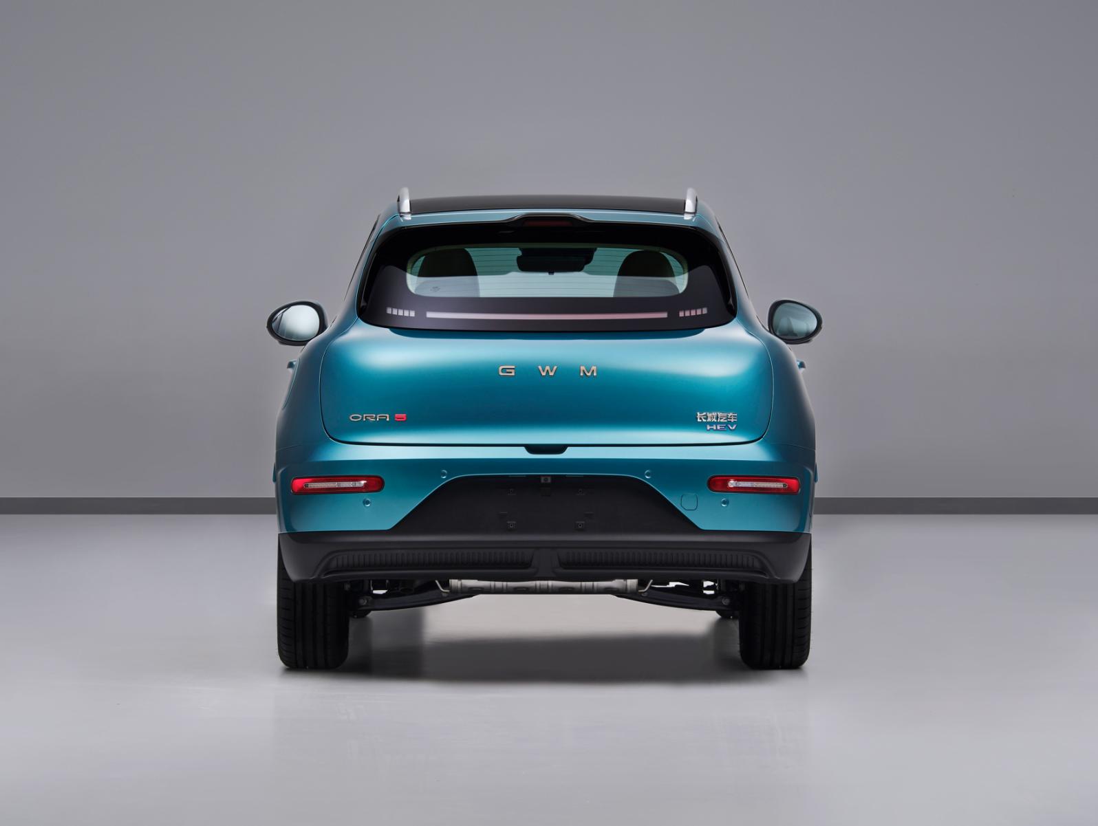车身侧面,欧拉5混动版和燃油版采用常规造型门把手和车顶行李架,整体尺寸与纯电版一致,长宽高分别为4471/1833/1641mm,轴距2720mm,定位于紧凑型SUV,车内采用5座布局。车尾部分,欧拉5混动版和燃油版配备车顶扰流板并内嵌高位刹车灯组,尾灯组依旧采用融合到后窗玻璃中的设计,尾门中央处悬挂“GWM”车标,左侧为“ORA”,右侧为“长城汽车”,下方的HEV和1.5T分别代表混动版和燃油版。