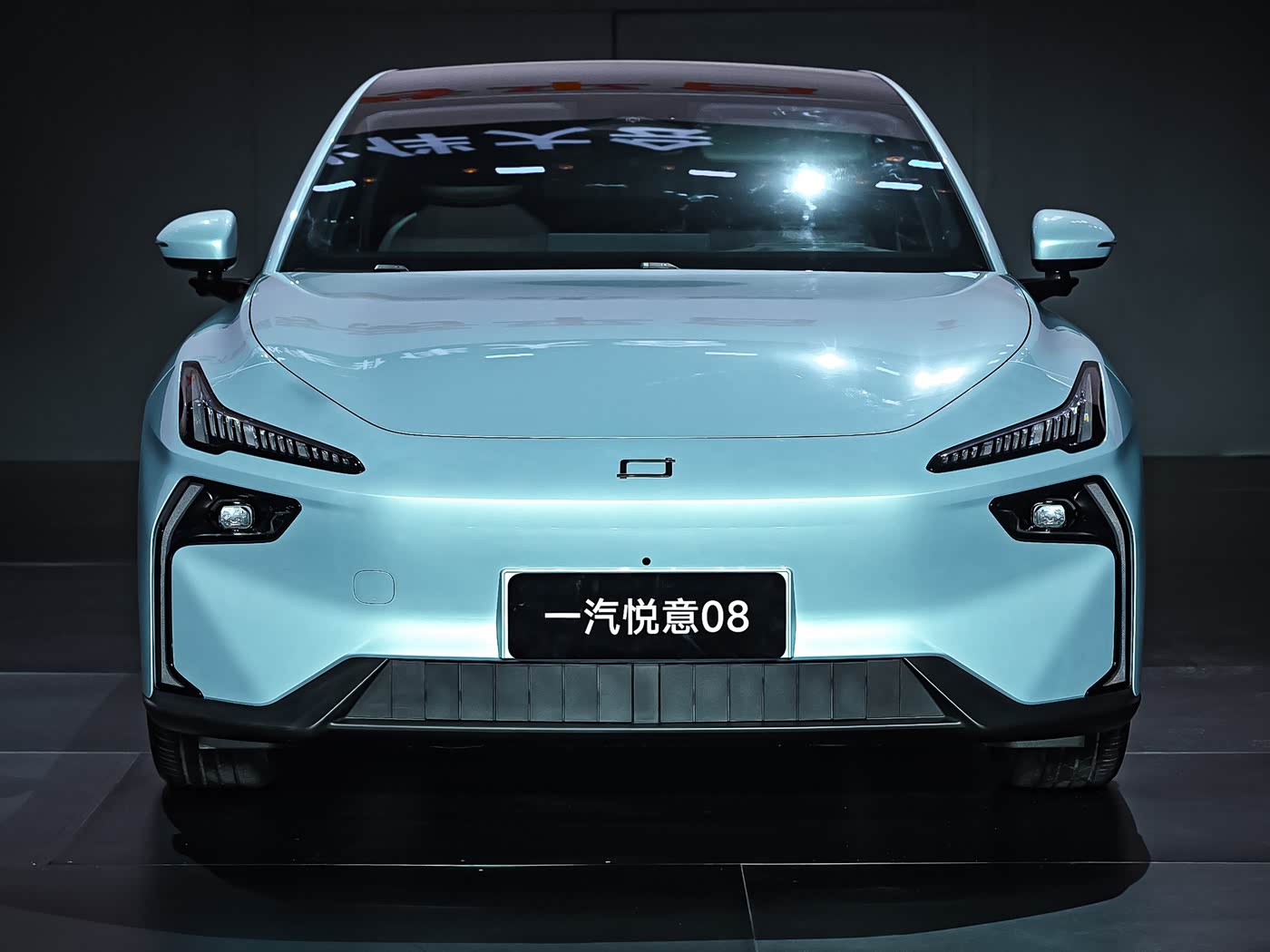 车身侧面,悦意08采用溜背式轿跑造型,搭配半隐藏式车门把手。尺寸方面,新车长宽高分别为4920/1920/1475mm,轴距为2900mm,定位中型轿车。车尾部分,尾部采用贯穿式的尾灯设计并搭配透明尾灯壳,后包围则安置了内凹式牌照框以及黑色装饰面板,后备厢中间采用全新的英文标识,尾标为“FAW”,下方左侧为中国一汽表明生产厂商,右侧为悦意08表明车型。