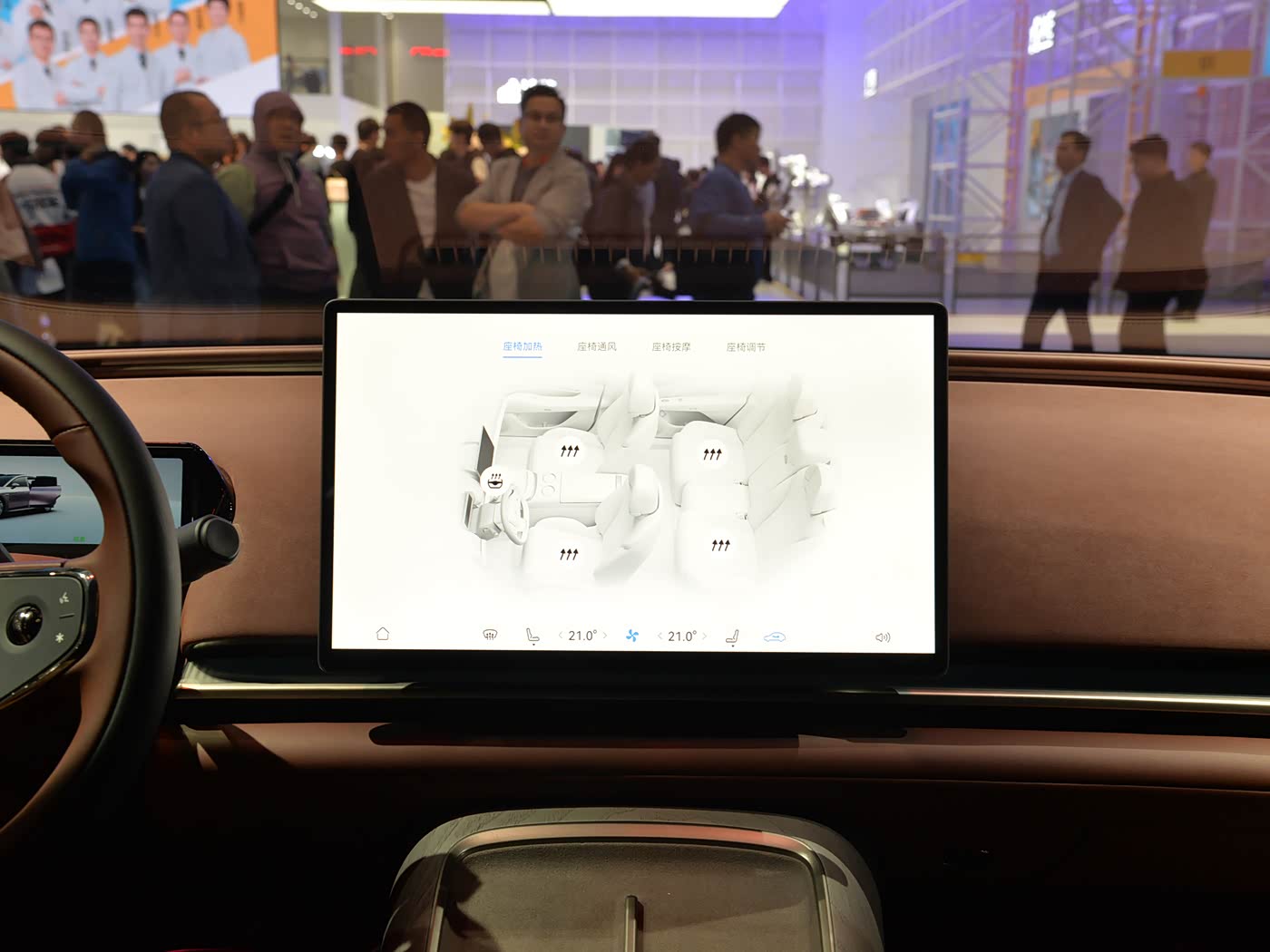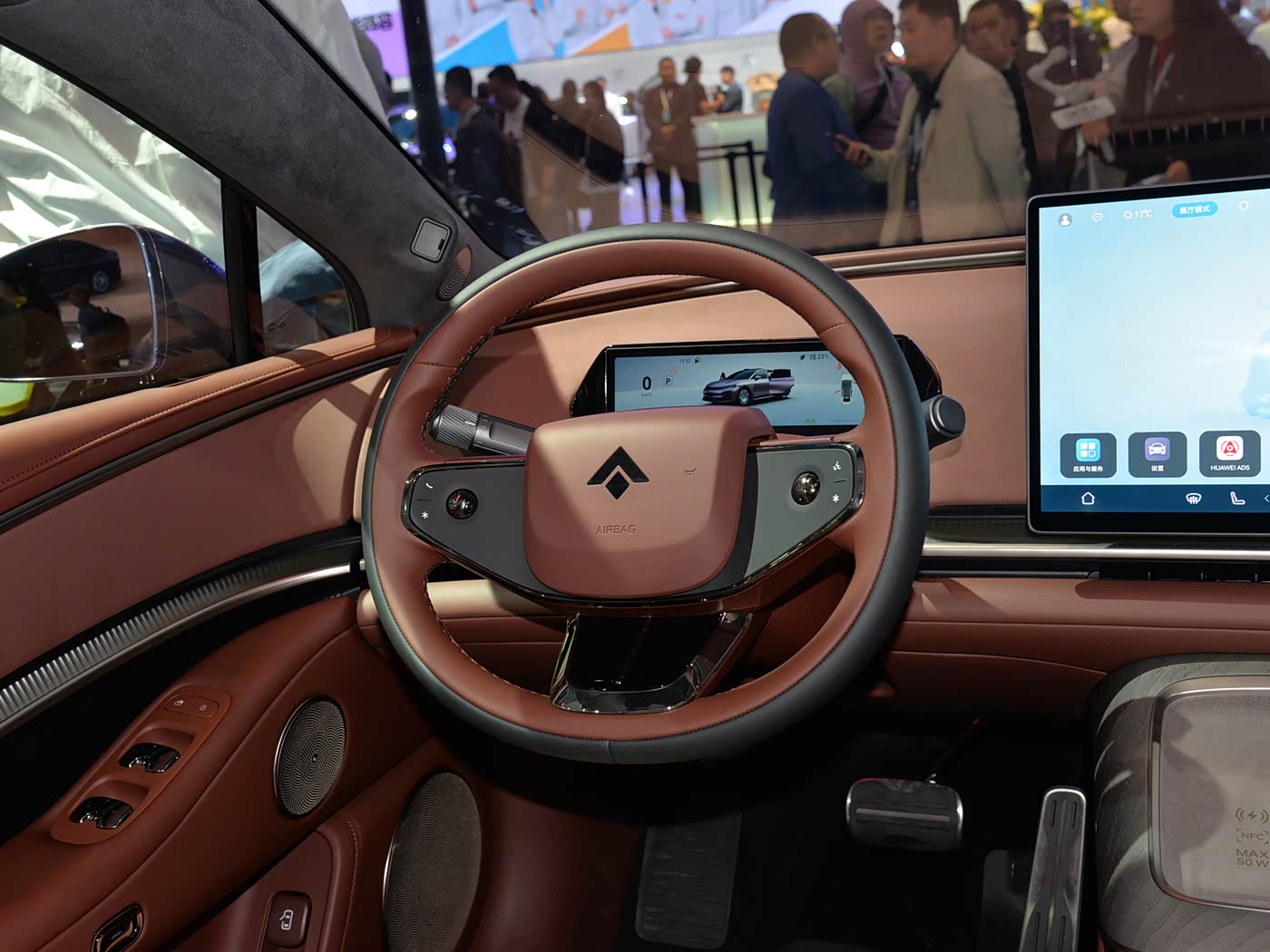 内饰方面,昊铂A800提供赤壁丹霞、多佛白崖、冷湖黑山三种内饰颜色,采用环抱式座舱设计,中控台上的金属装饰贯穿整个中控台并延展至车门,车内提供月晕氛围灯、琉璃氛围灯及反射式氛围灯。新车搭载12.3英寸全液晶仪表、27英寸W-HUD、15.6英寸中控屏,搭载鸿蒙座舱HarmonySpace 5,提供双手机无线充电板以及怀挡式换挡机构等配置。