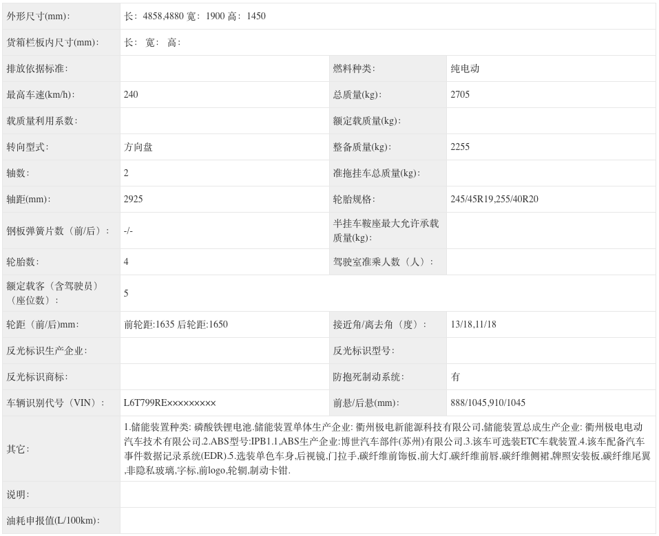 尺寸方面,新车长宽高分别为4858(4880)/1900/1460(1445)mm,轴距为2925mm。申报信息显示,新车同样提供19英寸和20英寸轮圈,轮胎规格为245/45 R19,255/40 R20。