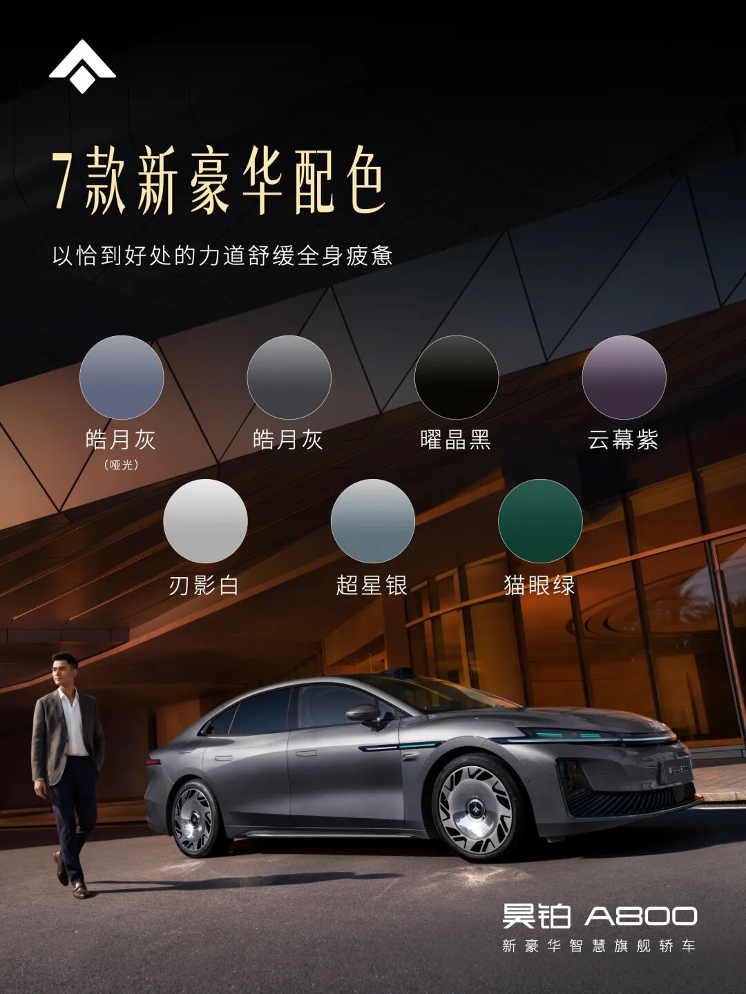 尺寸方面,新车长宽高分别为5130/1966/1500mm,轴距3020mm,定位中大型轿车。车身配色方面,新车提供云暮紫、刃影白、哑光皓月灰、皓月灰、曜晶黑、超星银、猫眼绿共计7款外观颜色选择。