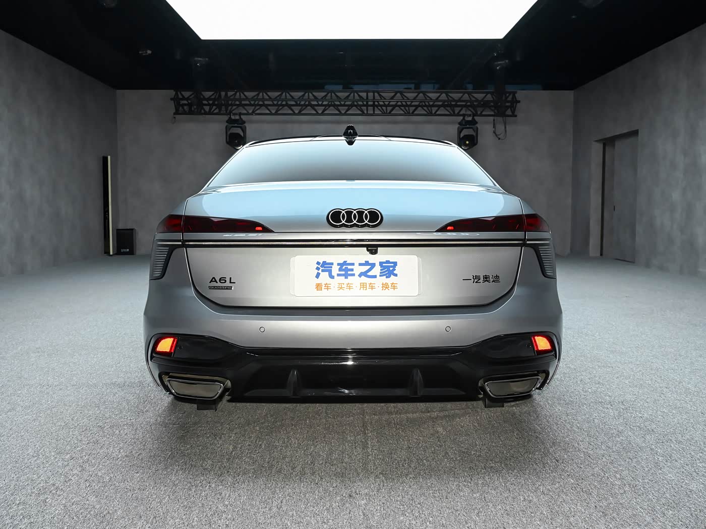 车尾部分,全新奥迪A6L车尾同样采用狭长的尾灯组,同样可切换多种动态灯语,灯组下方加入亮黑的导流槽装饰,形成分体式灯组的设计假象。同时,新车配备黑色下包围搭配镀铬饰条,与车头形成呼应,还提供双边共双出式矩形“真排气筒”,不再是现款车型的隐藏式设计。