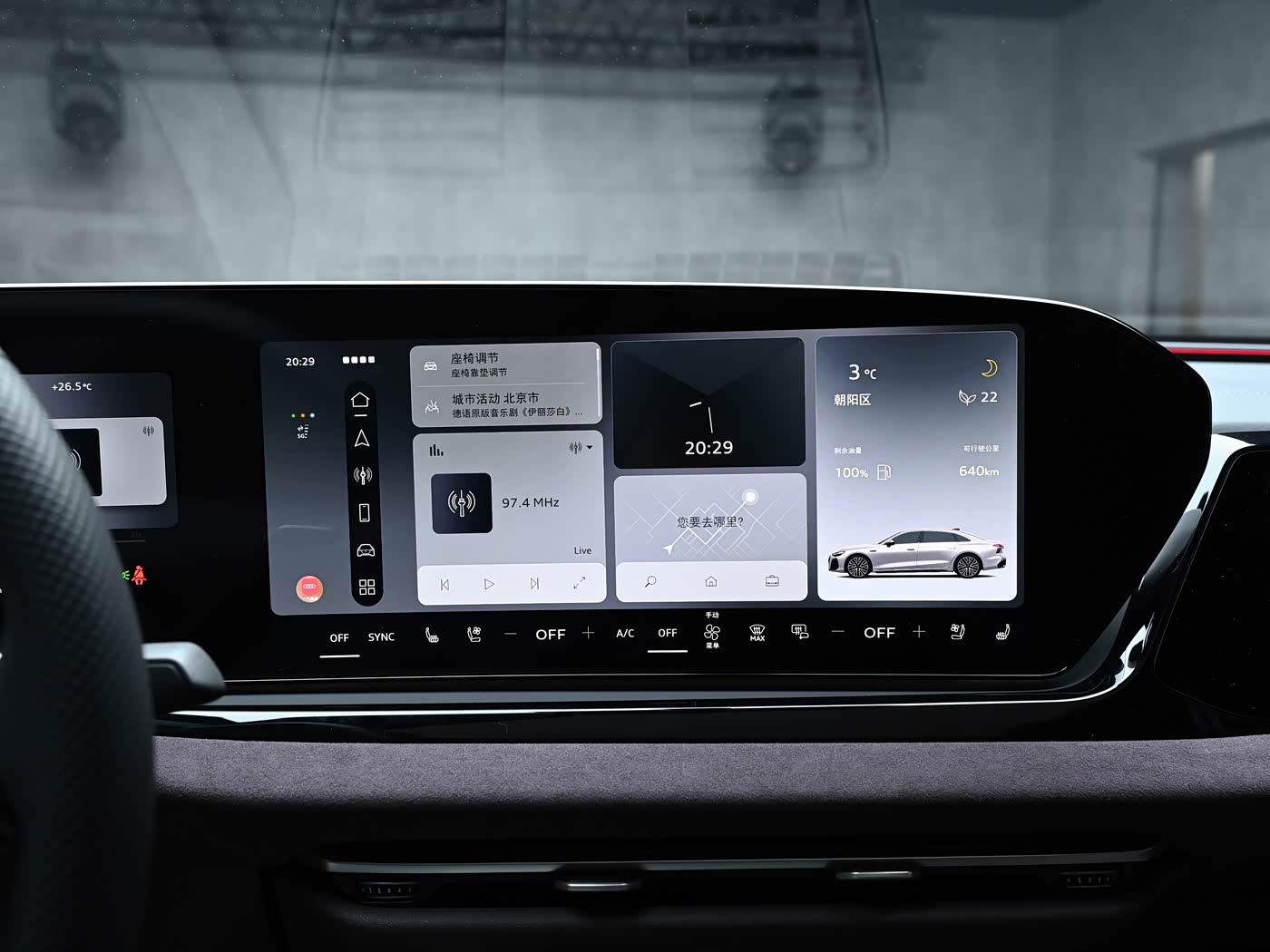 内饰方面,全新奥迪A6L采用11.9英寸仪表屏+14.5英寸中控屏+10.9英寸副驾屏的三屏组合。其中,主驾屏与中控屏采用环抱式设计,贴合驾驶视角;副驾屏则为非环抱式布局,并搭载电子防窥技术,有效避免屏幕光线干扰驾驶员注意力。W-HUD抬头显示系统支持3D效果呈现,可将辅助驾驶等核心信息清晰投射于前挡风玻璃,实现视线零转移。
