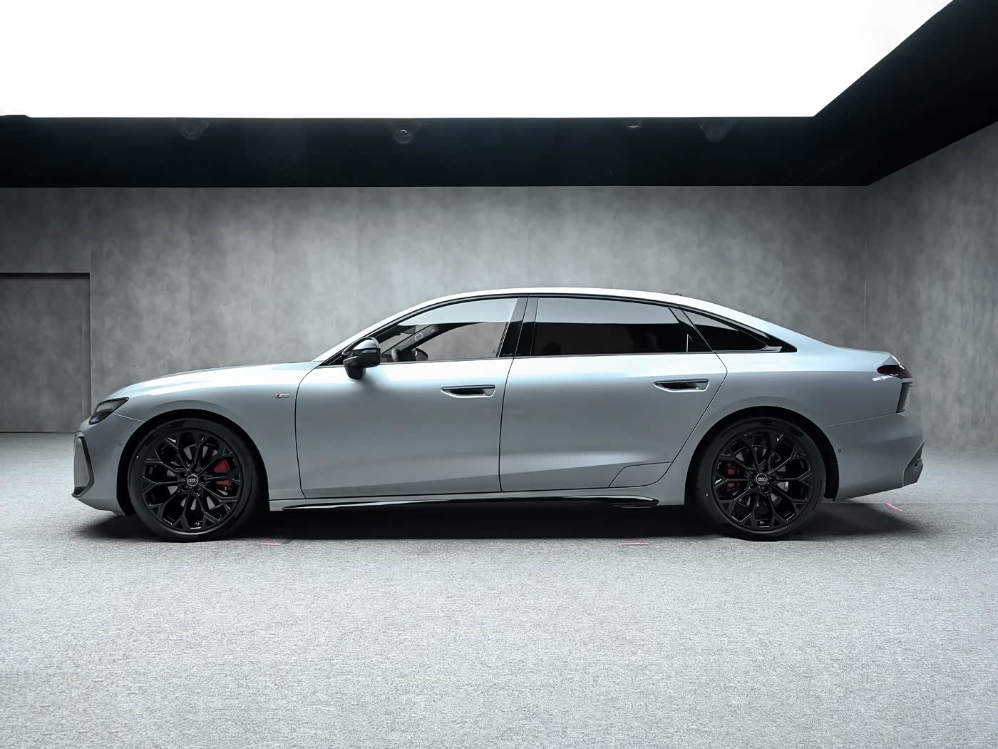 车身侧面,全新奥迪A6L车顶线条与现款奥迪A6L基本保持一致,仍将采用与在售车型相仿的C柱及尾部三角窗窗框线条,搭配半隐藏式车门把手,应急逃生时,奥迪车外门把手会自动弹出红色机械拉绳。尺寸方面,全新奥迪A6L的长宽高分别达到5142/1887/1464mm,轴距加长至3066mm。相较于现款车型,新车车长增加92mm,高度降低11mm,轴距拉长42mm,车身比例更显修长低趴,视觉上更具轿跑姿态。