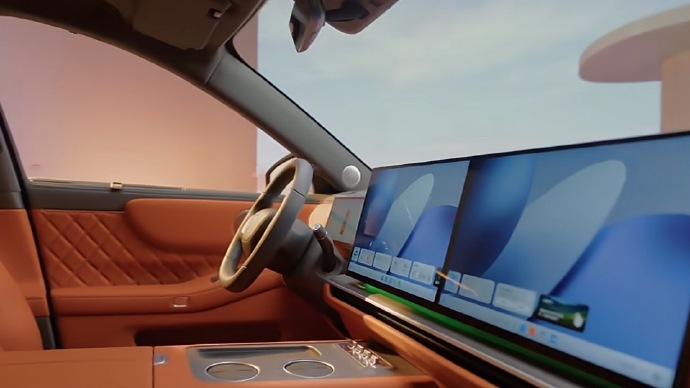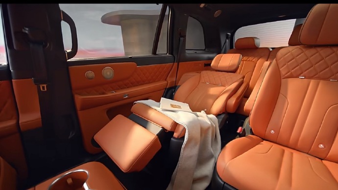 内饰部分,新车车内采用橙红色和灰色的双拼配色设计,并使用大面积皮质缝线和菱格纹进行装饰,看起来非常时尚。配置方面,新车配备悬浮液晶仪表和大尺寸双联屏,并提供怀挡式换挡机构和两边带滚轮的双辐方向盘,空调出风口采用贯穿式样式,并保留了部分实用的物理按键,整体不失科技感。座椅布局方面,新车采用2+2+2式的六座布局,二排空间带有吸顶娱乐屏等配置,满足不同用户的需求。