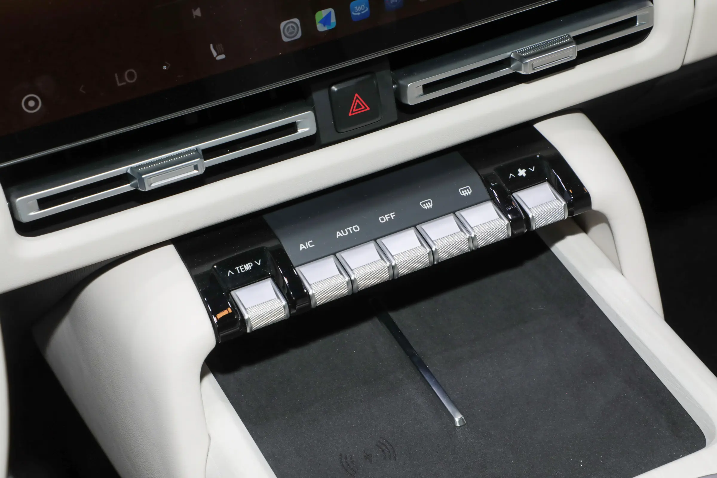 内饰方面,iCAR V27采用星舰座舱布局,整体风格简洁科技,采用双层中控台布局,配备15.4英寸中控大屏+8.8英寸液晶仪表,搭载高通8295P芯片,支持CarPlay、HiCar、CarLink手机无线互联。车内提供多功能方向盘+电子怀挡、钢琴式物理按键、50瓦手机无线快充、控制旋钮、氛围灯等。