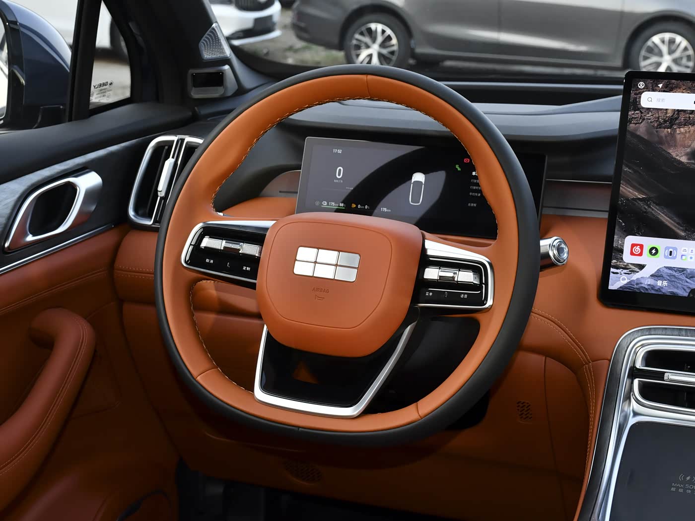 内饰方面,银河M7采用上下双色设计,提供3种内饰配色,搭配多处细节的镀铬元素,营造出较强的质感。新车采用全液晶仪表、悬浮式中控屏、三辐式多功能方向盘,并在中控台岛台处加入木纹饰板以及水晶元素,有着不错的精致感。