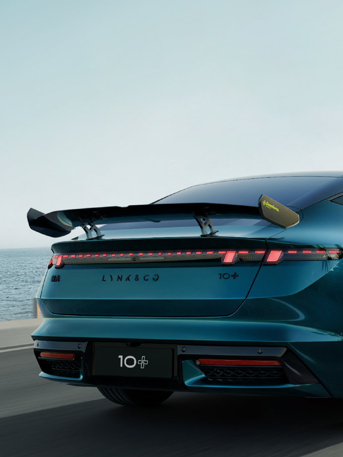 从官图来看,作为领克10的性能版本车型,领克10+采用全新的前包围设计,相比于领克10更动感。具体来看,新车前脸采用封闭式格栅搭配两侧呈现“H”造型的大灯组设计,视觉标识度非常高。前包围进气口更大,搭配前舱盖隆起的多条筋线,车辆运动气息更浓郁。车身侧面,新车整体的变化并不大,主要的变化是换装了黄色高性能四活塞定钳以及21英寸凌风锻造轮圈,并采用半隐藏式机械门把手替代纯电版车型的隐藏式门把手设计。另外,新车还采用全新的“赛影蓝”车身颜色设计,车顶前端还设置有激光雷达,预计将会有不错的驾驶体验。尺寸方面,作为参考,领克10纯电版车型长宽高分别为5050/1966/1468(1463)mm,轴距为3005mm。车尾部分,新车尾灯采用贯穿式灯带设计,最大的亮点是新车配备驭风可调碳纤维大尾翼,并支持电动调节,运动属性直接拉满。尾灯下方带有“领克”以及“10+”字样标识,进一步表明车辆身份。