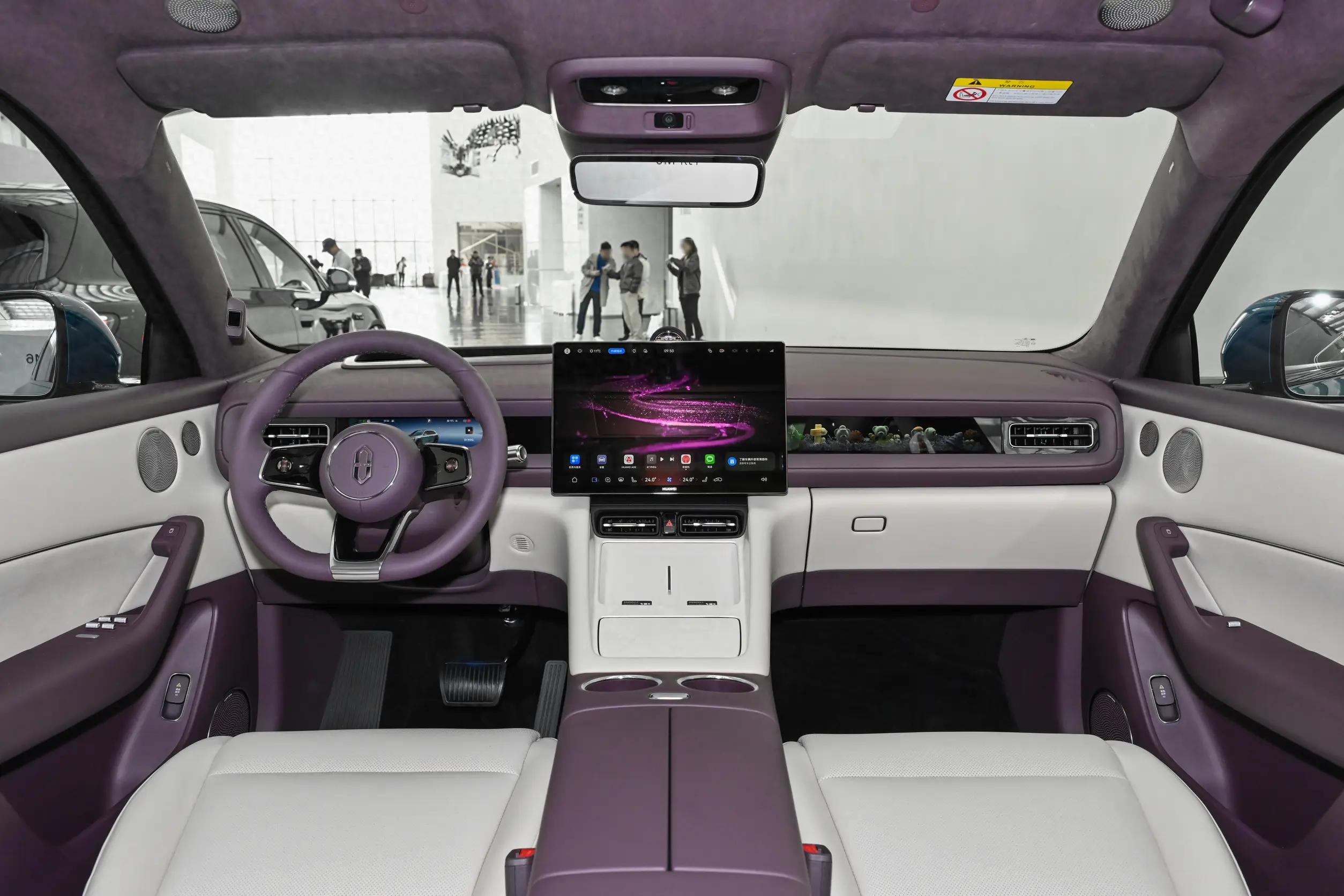 内饰部分,新车车内提供紫慕白、引力红、电光橙内饰配色选择,且均采用双色搭配。新车车内比较吸睛的是采用创新的“百变副驾”设计,搭载“会转头”的随动屏,提升人与车的交互感。副驾前方中控台上设计有“灵感橱窗”,可依据用户喜好布置场景,满足用户的多元需求。另外,新车还配备全液晶仪表以及电子怀档杆,并搭载全景天幕,并提供车载冰箱、吸顶屏等配置,整体科技感十足。座椅布局方面,新车车内提供5座布局。辅助驾驶方面,新车全系标配896线双光路图像级激光雷达。