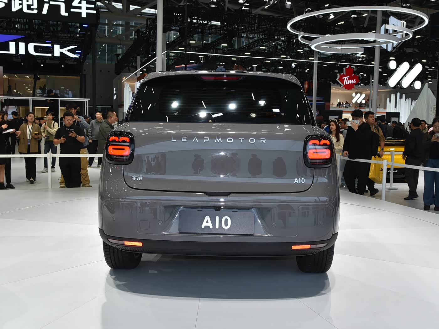 车身侧面,新车整体比例非常短小精干,前后轮眉采用宽厚的黑面设计营造跨界质感,采用半隐藏式车门把手,B/C/D柱进行隐藏式布局,营造出悬浮车顶的效果,D柱位置还拥有两条横向饰条并黑化轮眉。车身尺寸方面,零跑A10长宽高分别为4270/1810/1635mm,轴距2605mm。车尾部分,新车采用宽体尾部设计,最大亮点是其配备“哈哈尾灯”,点亮后效果十分俏皮可爱。