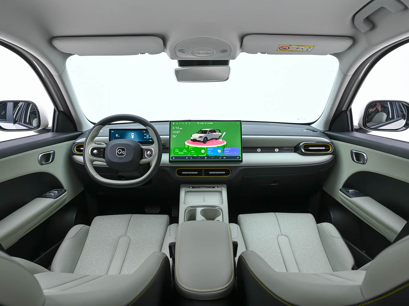 车身侧面,新车采用长轴距短前后悬设计,配备半隐藏式门把手并对门框细节处进行熏黑处理。车尾部分,新车尾灯与前脸类似,灯组内部采用横向线条加矩形元素的组合,搭配大尺寸扰流板设计,营造出动感的姿态。车身颜色方面,新车提供云粉米、赤焰红、翎羽白、飘逸紫、桃夭粉、月剑银共六种车身配色供消费者选择,满足不同年轻群体的个性化需求。尺寸方面,新车长/宽/高分别为4195/1811/1569mm,轴距为2700mm,定位纯电小型车,车内采用五门五座的掀背造型。