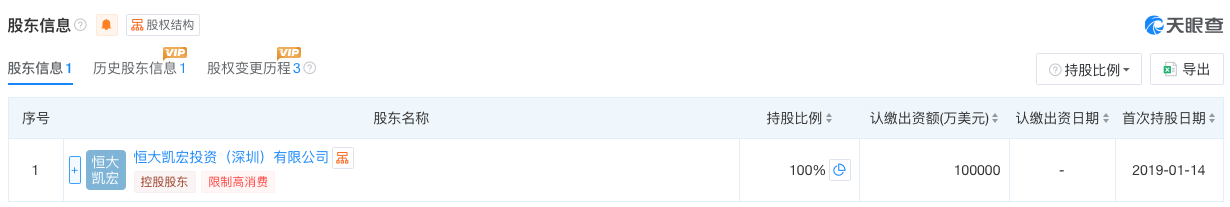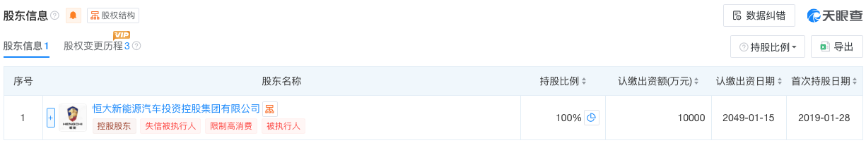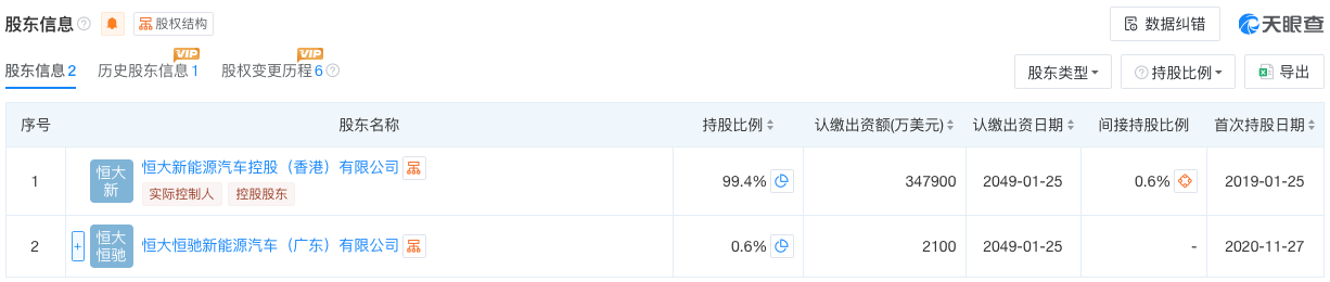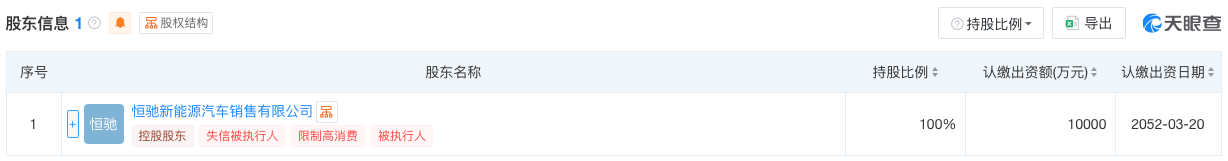 天眼查显示显示,恒大新能源汽车科技(广东)有限公司于2019年1月成立,曾用名为恒大国能新能源汽车科技(广东)有限公司,注册资本和实缴资本均为1亿元人民币,主要从事新能源汽车的研发业务,该公司由恒大新能源汽车投资控股集团有限公司全资控股。至于恒驰(广州)汽车销售服务有限公司,于2022年3月成立,注册股本为1亿元人民币,主要从事汽车销售及服务,该公司由恒驰新能源汽车销售有限公司全资控股。