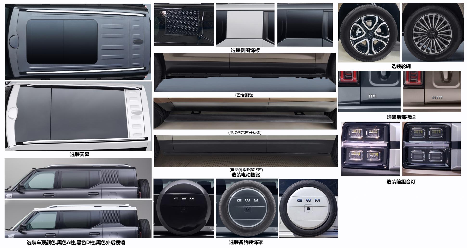 外观方面,新车整体采用较为方正的车头设计,窄条幅式前格栅与两侧圆角矩形灯组相连接,搭配中央两条镀铬饰条,气场十足。车顶集成激光雷达模组与行李架,既强化高阶智驾属性,又兼顾户外实用需求。车身侧面,新车采用趋于平直的车顶线条,配合车身腰线以及隆起的轮眉,从而营造出较为硬朗的视觉效果。车尾部分,新车尾部采用纵置尾灯组,采用侧向开门结构,并配备挂式备胎,延续硬派越野经典元素。尺寸方面,新车长宽高分别为5138(5299)/2050/1970mm,轴距为3000mm,定位中大型SUV。