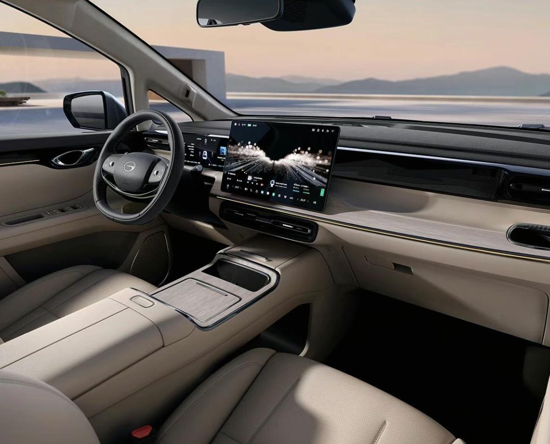 内饰部分,新车全系标配10.25英寸仪表屏和15.6英寸中控屏,并提供电子怀档杆。座椅布局方面,新车车内采用2+2+3的七座布局。其中,二排提供两个独立的豪华座椅,带有腿托、加热等功能,并提供17.3英寸后排屏幕、随行小桌板以及三温冰箱。