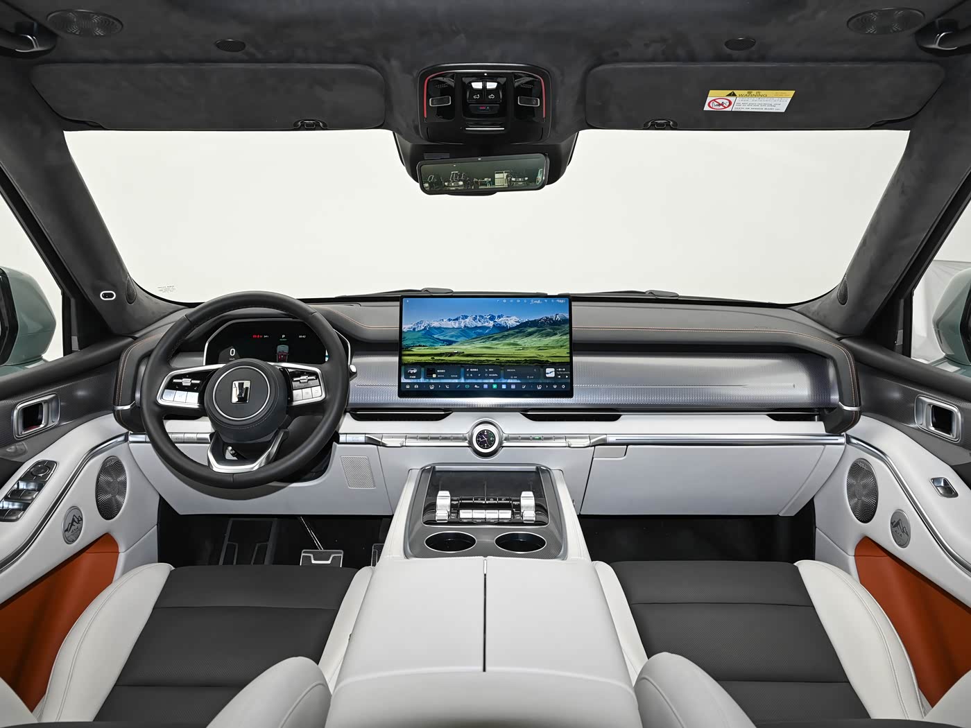 内饰部分,新车车内采用上深下浅配色方案,配备环抱式设计风格,提供12.3英寸2K仪表屏和15.6英寸2.5K中控大屏,搭载Coffee OS智慧座舱以及Coffee Vision屏幕显示系统,并提供三辐式多功能方向盘,取消传统造型换挡杆,取而代之的是怀挡设计。此外,新车还在后排座椅配备17.3英寸3K吸顶娱乐屏、天窗、二排隐私帘以及车载冰箱等,整体科技感十足。