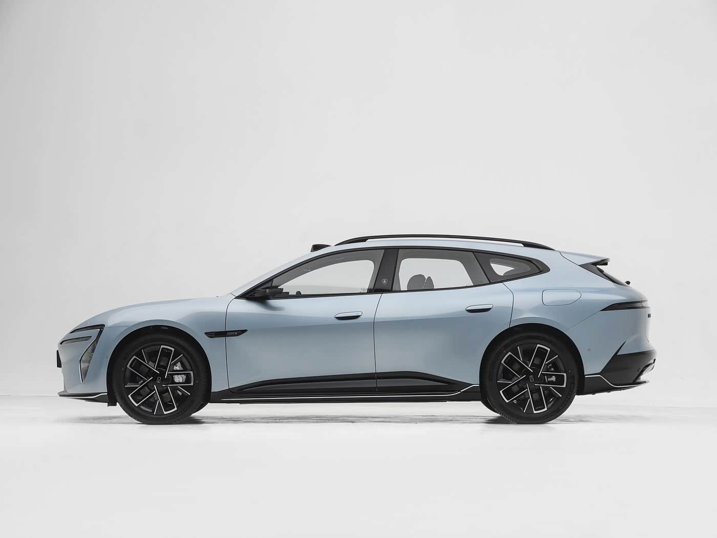 外观方面,新车采用未来运动美学设计语言,灵感来源于“游隼”俯冲姿态,呈现出低趴宽体姿态。具体来看,新车前脸采用俯冲式封闭格栅搭配两侧官方称之为“F”形飞翼大灯组设计,中间是可发光的品牌标识,点亮后很好辨认。前包围则采用熏黑处理的梯形主动进气格栅,进一步提升运动属性。车身侧面,新车线条流畅,车顶线条从B柱后自然下滑,并采用镂空式的黑色车顶行李架布局,搭配电子外后视镜、无框车门以及半隐藏式门把手设计,配备大尺寸轮拱外扩布局,兼顾运动感和实用性。车尾部分,新车采用无后风挡车窗设计,尾灯组使用全新的贯穿式效果,内嵌立体灯带,搭配圆润的后翼子板以及下压式扰流板,营造出旅行车风格。
