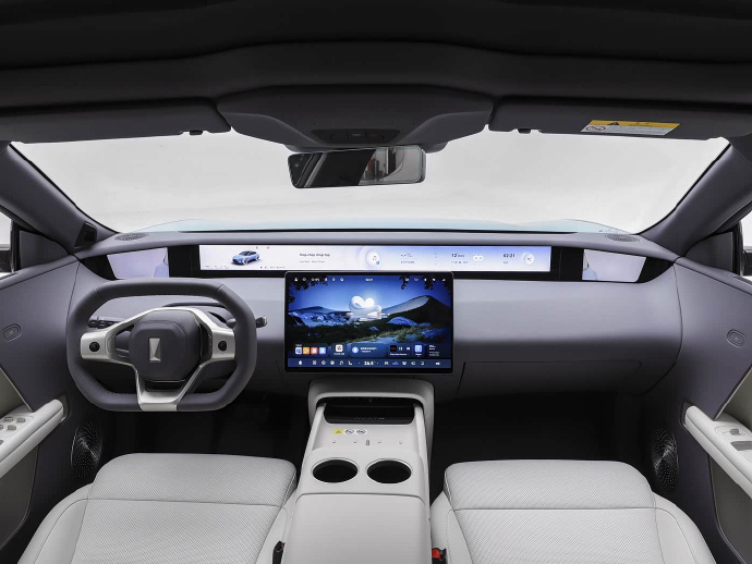 内饰部分,新车车内提供暮紫/烟白、深紫、岱红三种内饰主题,配备环拥式座舱设计。配置方面,新车配备15.6英寸中控屏和35.4英寸4k全景星环屏,搭载鸿蒙座舱HarmonySpace 5,内置MoLA大模型,并搭配近似椭圆形的三辐式方向盘。辅助驾驶方面,新车搭载896线激光雷达、华为ADS 4驾驶辅助和鸿蒙座舱5。