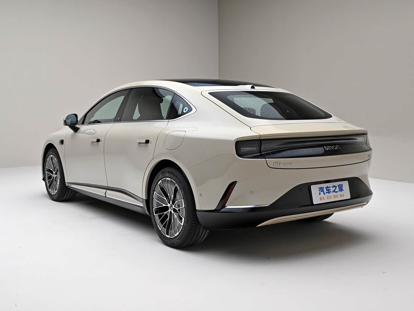 外观方面,smart精灵#6 EHD设计灵感来源于鲨鱼,车头采用“仿生鲨吻式贯穿风道”的设计,应用封闭式前脸搭配贯穿式灯组,预计支持自定义灯语功能,前包围使用尺寸较大的梯形进气口搭配两侧进气口布局,配合前保险杠两侧垂直布局的导流槽设计,进一步提升车辆的运动属性。车顶前部搭载有激光雷达,将提供高阶辅助驾驶功能。车身侧面及尾部,smart精灵#6 EHD超级电混呈现出溜背式轿跑风格,配备有隐藏式门把手、贯穿式尾灯及四档可调的主动式尾翼,尾灯同样支持自定义灯语。尺寸方面,新车长宽高分别为4906/1922/1508mm,轴距为2926mm,定位中型轿车。