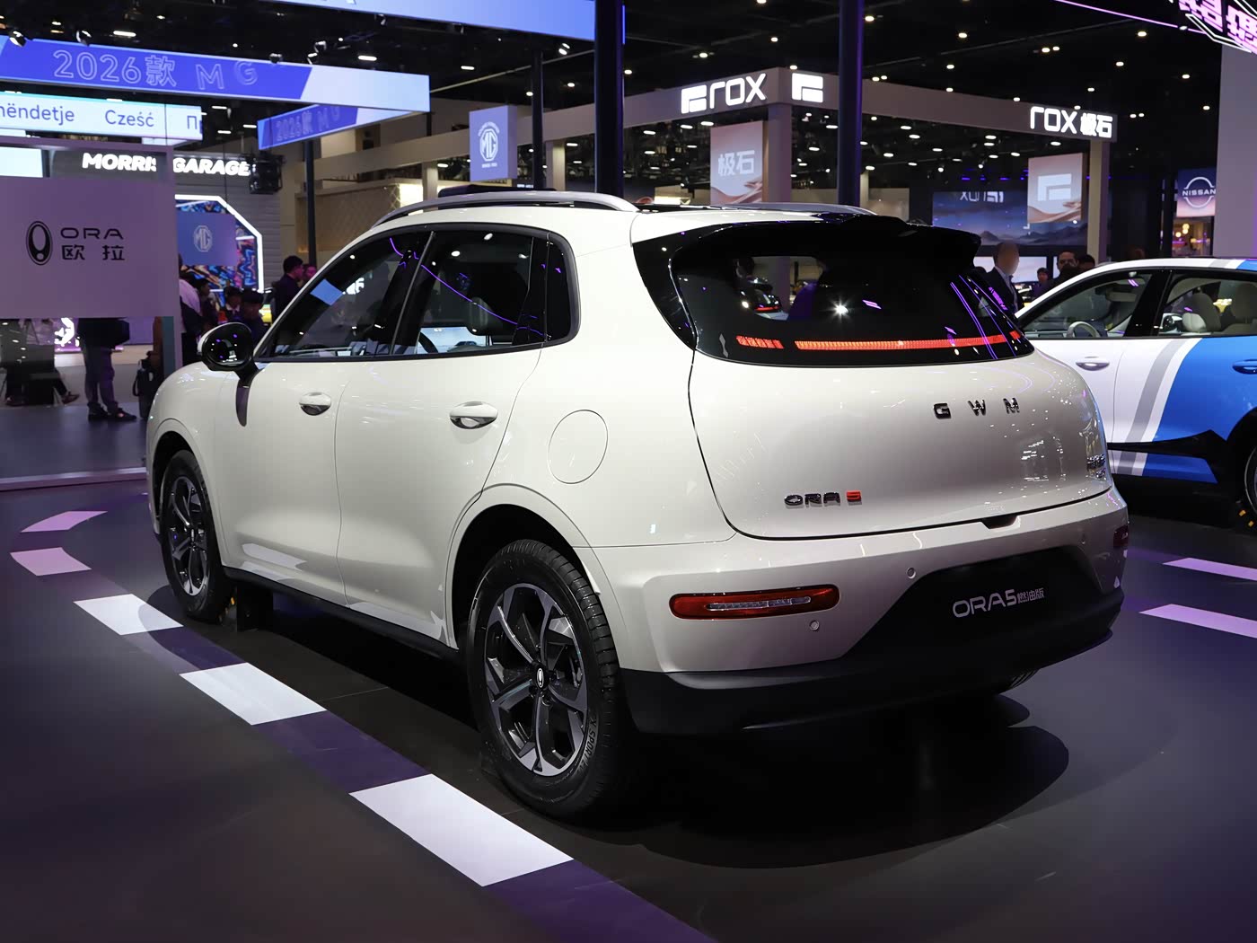 外观方面,欧拉5混动版和燃油版车型延续欧拉5纯电版的外观设计前脸搭配圆形的前大灯组,车头采用具有筋线的分层式设计,前包围配备大尺寸梯形散热开口,两侧还搭配有纵向布局的通风开口设计。车身侧面,欧拉5混动版和燃油版采用常规造型门把手和车顶行李架,整体尺寸与纯电版一致,长宽高分别为4471/1833/1641mm,轴距2720mm,定位紧凑型SUV,车内采用5座布局。车尾部分,欧拉5混动版和燃油版配备车顶扰流板并内嵌高位刹车灯组,尾灯组依旧采用融合到后窗玻璃中的设计,尾门中央处悬挂“GWM”车标,左侧为“ORA”,右侧为“长城汽车”,下方的HEV和1.5T分别代表混动版和燃油版。