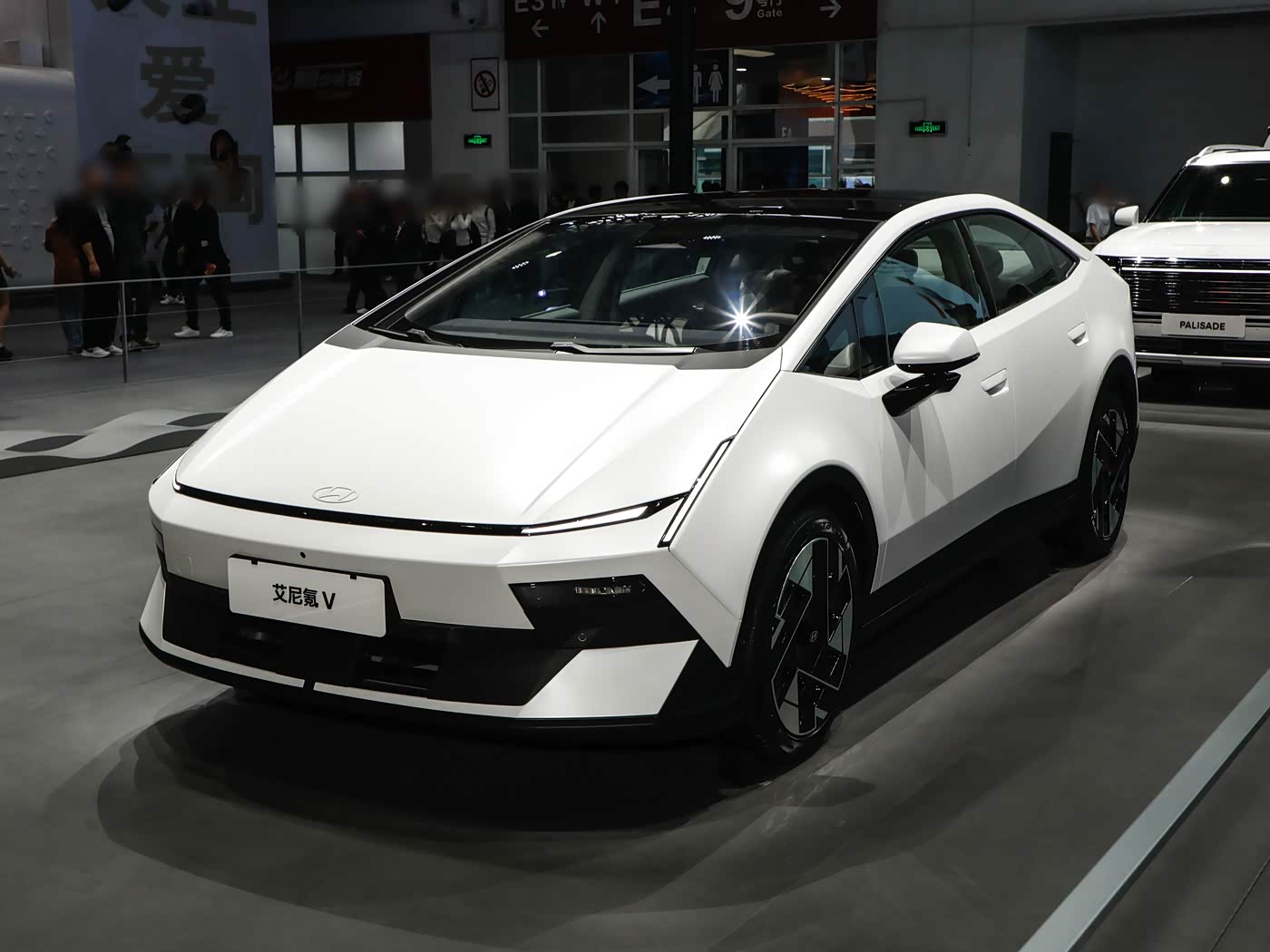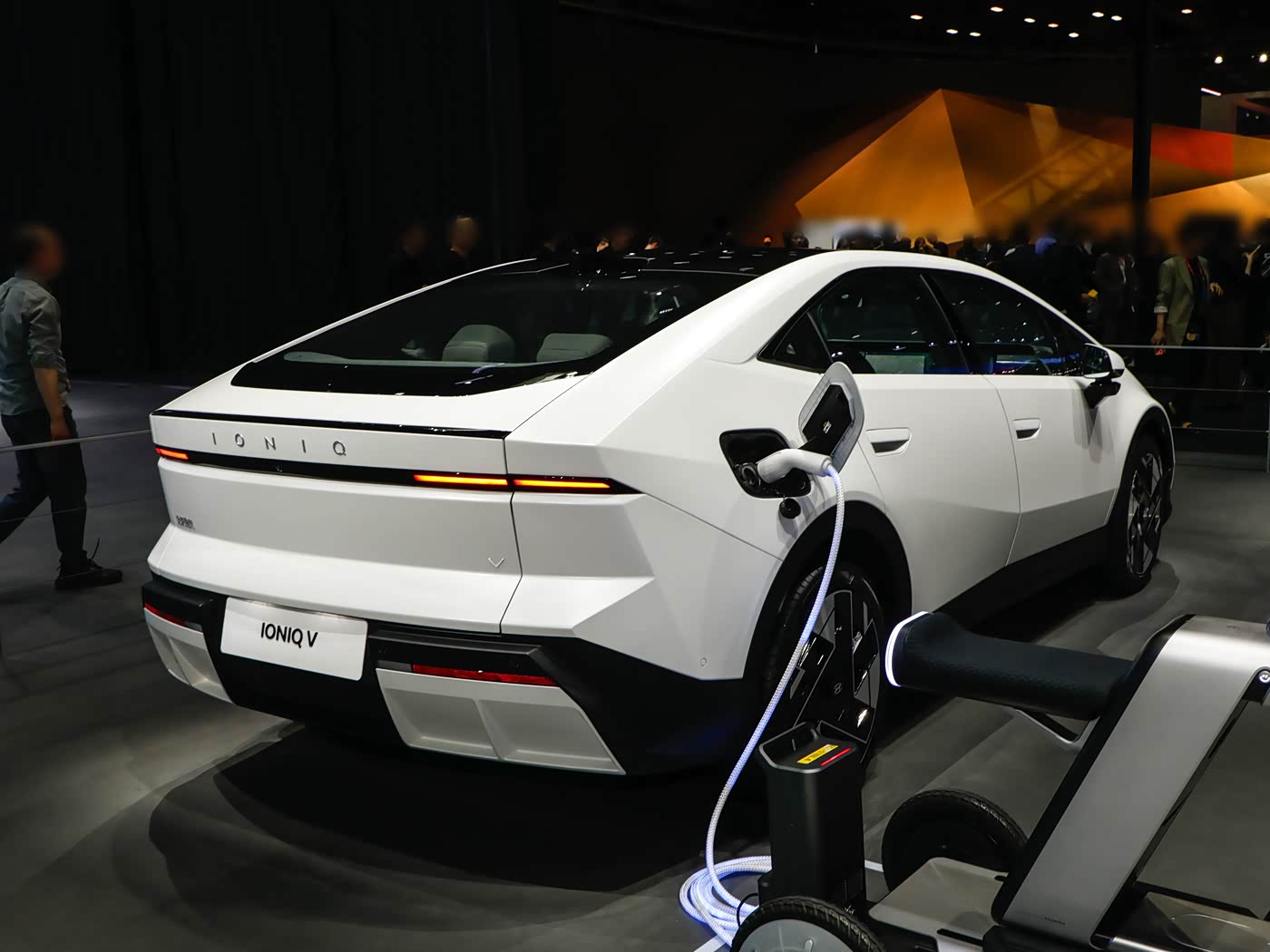 综合车展亮相的展车来看,IONIQ V采用多型面的立体设计,独特的V型灯光系统、悬浮式透明后视镜,令外观极具潮流感。车侧采用无框式车门,长宽高分别为4900/1890/1470mm,轴距为2900mm,车尾为次元星轨尾灯样式。内饰方面,新车采用星云环抱式座舱设计,配备27英寸超薄4K超大屏、星云光影氛围灯及赛博之眼HUD抬头显示,科技感十足。