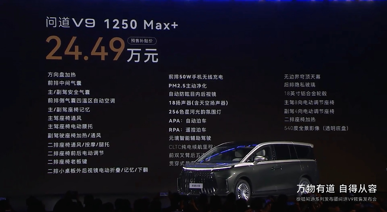作为极狐汽车旗下高端产品系列,“问道”于今年2月正式发布,问道V9则是该产品系列首款高端MPV车型。综合问道V9的定位和预售价格分析,作为中大型豪华新能源MPV,新车上市后将与上汽通用别克GL8 PHEV、比亚迪夏DM-i以及传祺E9、极氪009等潜在竞争车型展开竞争。